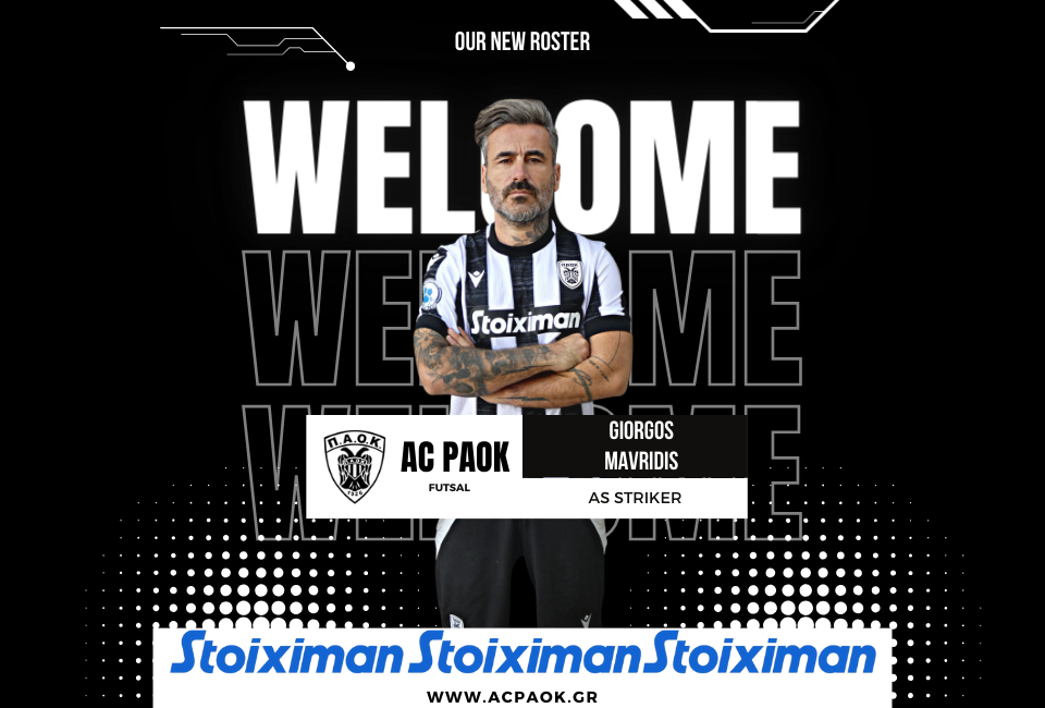 Ο ΠΑΟΚ, και το τμήμα Ποδοσφαίρου Σάλας, ανακοινώνουν την έναρξη συνεργασίας με τον αθλητή, Γιώργο Μαυρίδη, για την αγωνιστική περίοδο 2023-2024.