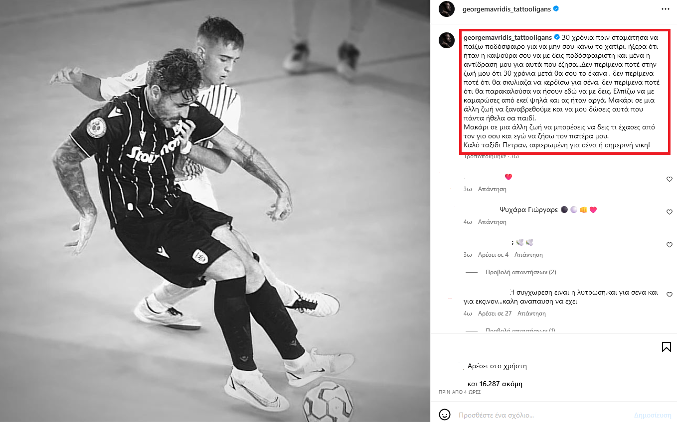 Πολύ συγκινητική η ανάρτηση του Γιώργου Μαυρίδη.
