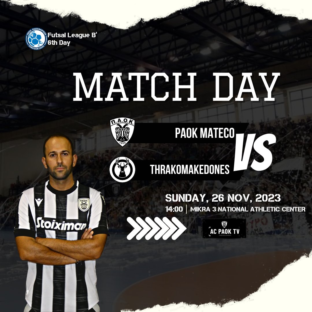 Για την 6η αγωνιστική της Futsal League B', ο ΠΑΟΚ mαteco υποδέχεται την Κυριακή 26 Νοεμβρίου και ώρα 14:00, στο Εθνικό Γυμναστήριο Μίκρας 3, τους Θρακομακεδόνες.