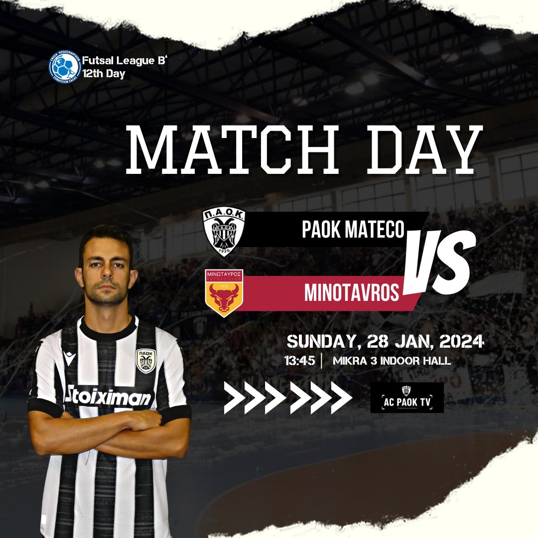 Για την 12η αγωνιστική της Futsal League B', ο ΠΑΟΚ mαteco υποδέχεται την Κυριακή 28 Ιανουαρίου και ώρα 13:45, στο Εθνικό Γυμναστήριο Μίκρας 3, τον Μινώταυρο.