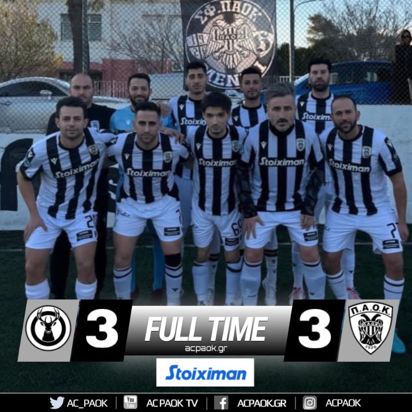 Ίδια ήταν η εικόνα και του δευτέρου ημιχρόνου, με το παιχνίδι να είναι... φτωχό επιθετικά. Οι γηπεδούχοι ισοφάρισαν σε 2-2, με τον ΠΑΟΚ mαteco με γκολ του Σαραπτσή να παίρνει και πάλι το προβάδισμα, 2-3. Στα τελευταία δευτερόλεπτα, και ενώ ο Δικέφαλος προηγούταν στο σκορ με 2-3, οι γηπεδούχοι βρήκαν γκολ ισοφάρισης, 3-3, με αυτό να είναι και το τελικό αποτέλεσμα.