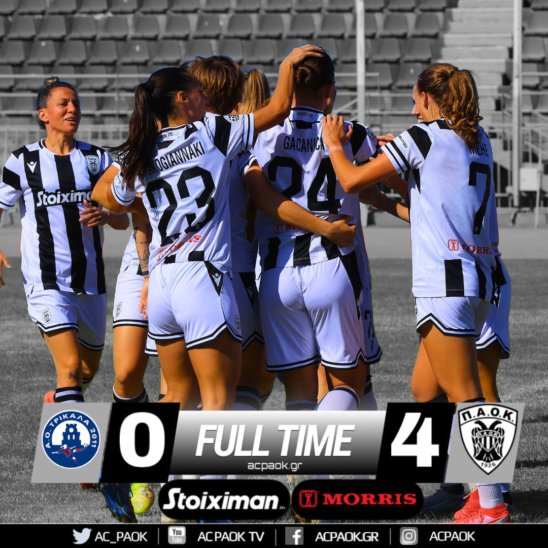 Το τμήμα Ποδοσφαίρου γυναικών του ΠΑΟΚ, ευχαριστεί την ομάδα των Τρικάλων για την άψογη φιλοξενία, και επιφυλάσσεται για αντίστοιχη στο παιχνίδι του δευτέρου γύρου στην Θεσσαλονίκη.