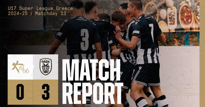 Άνετη επικράτηση επί της Athens Kallithea στην Αθήνα για την Κ17, η οποία κέρδισε 0-3 για την 13η αγωνιστική της Super League και παρέμεινε στην κορυφή της βαθμολογίας, στο συν ένα από τον Ολυμπιακό.
