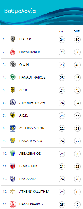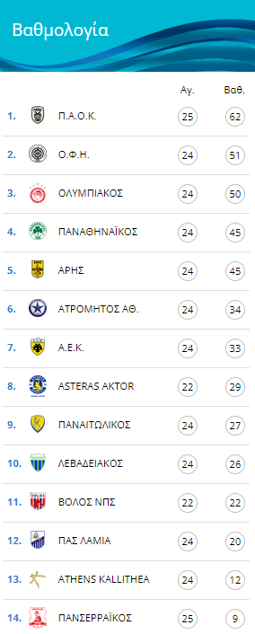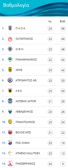 Έχουμε: 18 νίκες - 5 ισοπαλίες - 1 ήττα.