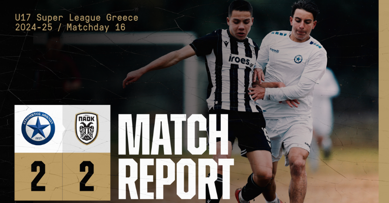 Δεύτερο συνεχόμενο πρωτάθλημα, έκτο συνολικά, πρώτο με την πανελλήνια μορφή του για την Κ17 του ΠΑΟΚ, η οποία πανηγύρισε την κούπα τρεις αγωνιστικές πριν το τέλος του πρωταθλήματος. Η απονομή θα γίνει στην Τούμπα την Μεγάλη Τετάρτη 16.04 μετά το τέλος του αγώνα με τον Παναθηναϊκό (13:00) για την 17η αγωνιστική της Super League. Απομένει ένα παιχνίδι, το εκτός έδρας με τον Βόλο.