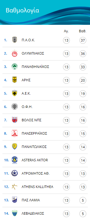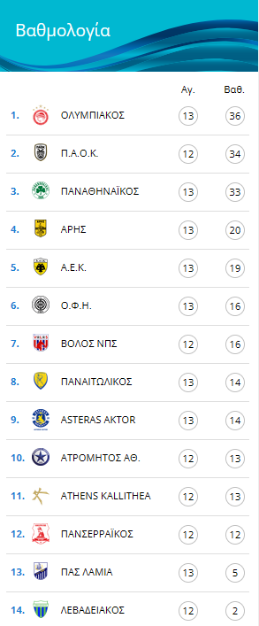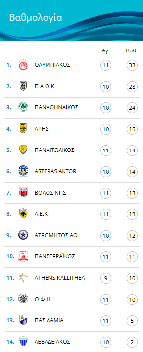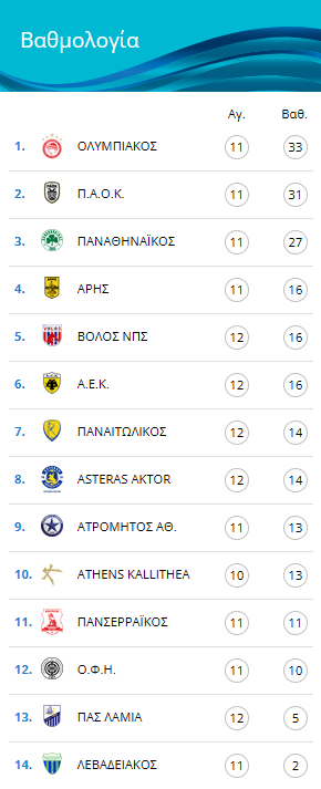 Ο ΠΑΟΚ είναι στο μείον δύο από τον Ολυμπιακό με ένα παιχνίδι λιγότερο, αυτό με την Athens Kallithea που αναβλήθηκε και ορίστηκε για τις 7 Ιανουαρίου.