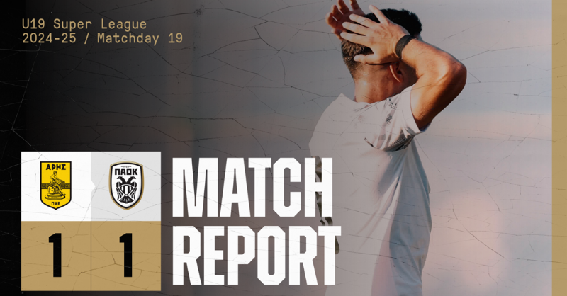 Η Κ19 αναδείχτηκε ισόπαλη 1-1 με τον Άρη στο Φίλυρο στο ματς της 19η αγωνιστικής, που έγινε το μεσημέρι του Σαββάτου και δεδομένου ότι ο Ολυμπιακός κέρδισε στο Περιστέρι, ο Δικέφαλος έπεσε από την κορυφή, στο μείον ένα από τον Ολυμπιακό.