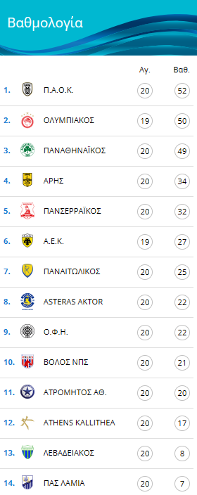 Η ομάδα των Τσιαπακίδη και Χάγκαν πάτησε προσωρινά κορυφή με 52 βαθμούς μετά από 20 παιχνίδια, με τον Ολυμπιακό να είναι στους 50 με 19 ματς (πηγαίνει στην έδρα της ΑΕΚ στις 22.03).