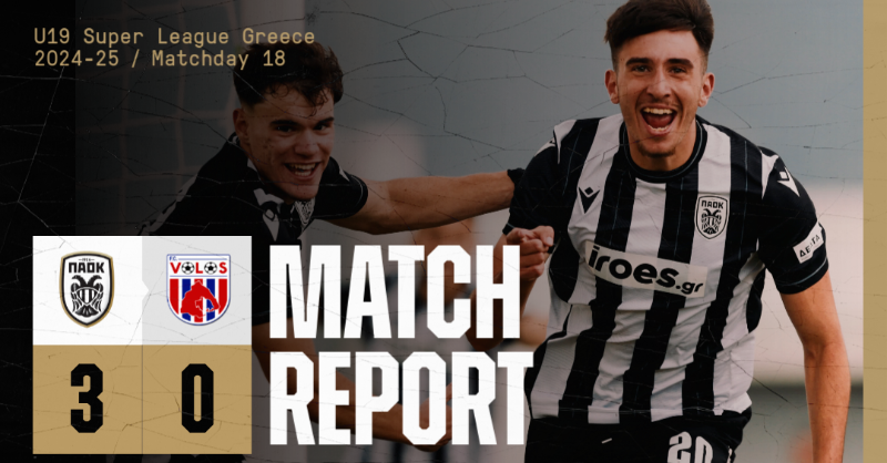 Ο ΠΑΟΚ κέρδισε 3-0 τον Βόλο στο ματς της 18ης αγωνιστικής, που έγινε το μεσημέρι του Σαββάτου στη Σουρωτή, τερματίζοντας στην δεύτερη θέση του πρωταθλήματος με 67 βαθμούς σε 26 παιχνίδια. Μια δεύτερη θέση που οδηγεί στο Youth League της επόμενης σεζόν, ως γνωστόν.