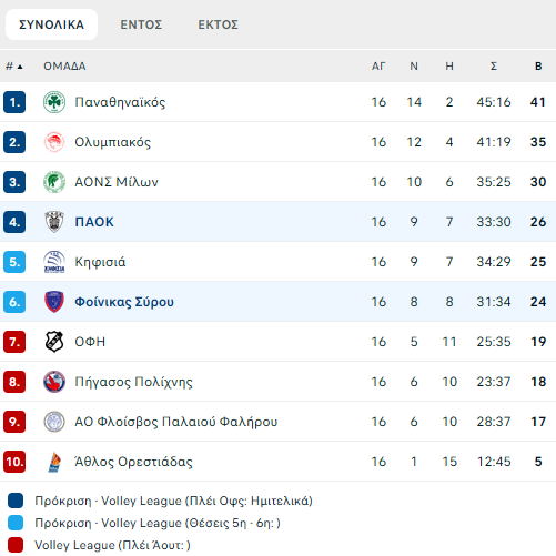 * Οι πόντοι του ΠΑΟΚ προήλθαν από 10 άσσους, 58 επιθέσεις, 15 μπλοκ και 29 λάθη αντιπάλων και του Φοίνικα Σύρου προήλθαν από 6 άσσους, 55 επιθέσεις, 15 μπλοκ και 25 λάθη αντιπάλων