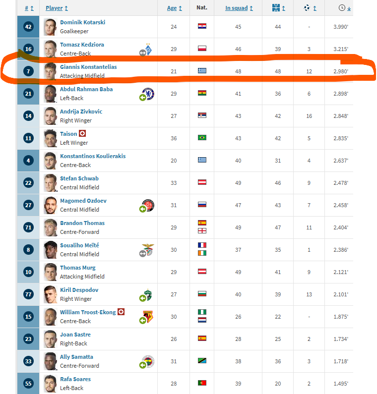Ο Γιάννης Κωνσταντέλιας βρίσκεται στην 8η θέση των κορυφαίων παικτών στη θέση του, σε μια λίστα που περιλαμβάνει αστέρια του παγκοσμίου ποδοσφαίρου. Στην κορυφή βρίσκεται ο Τζουντ Μπέλιγχαμ της Ρεάλ Μαδρίτης, με τον Φλόριαν Βιρτς της Λεβερκούζεν και τον Μπιλάλ Ελ Κανούς της Γκενκ να βρίσκονται στη δεύτερη και τρίτη θέση αντίστοιχα.